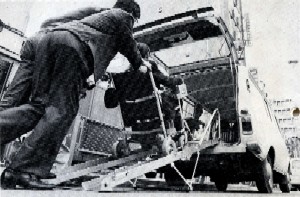 ![]() 当初の移送サービスは、障害当事者やボランティア、支援者の手によって普通車両を改造して、運行されていた。(新宿福祉の家「わのれぽーと」より) |